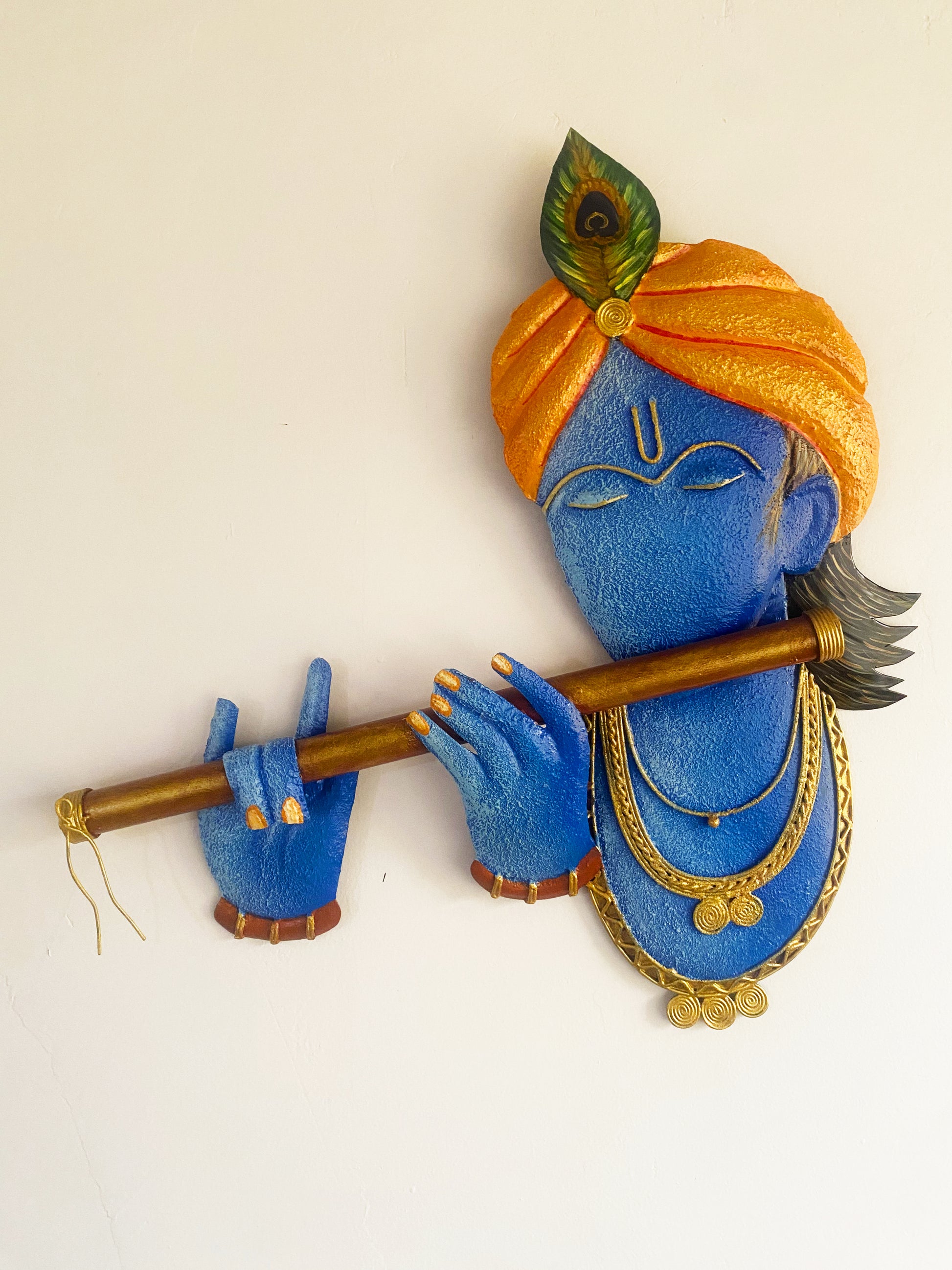 Handmade Bansuri Krishna Metal Wall Art, Multicolour, Wall Hanging for Home Decor